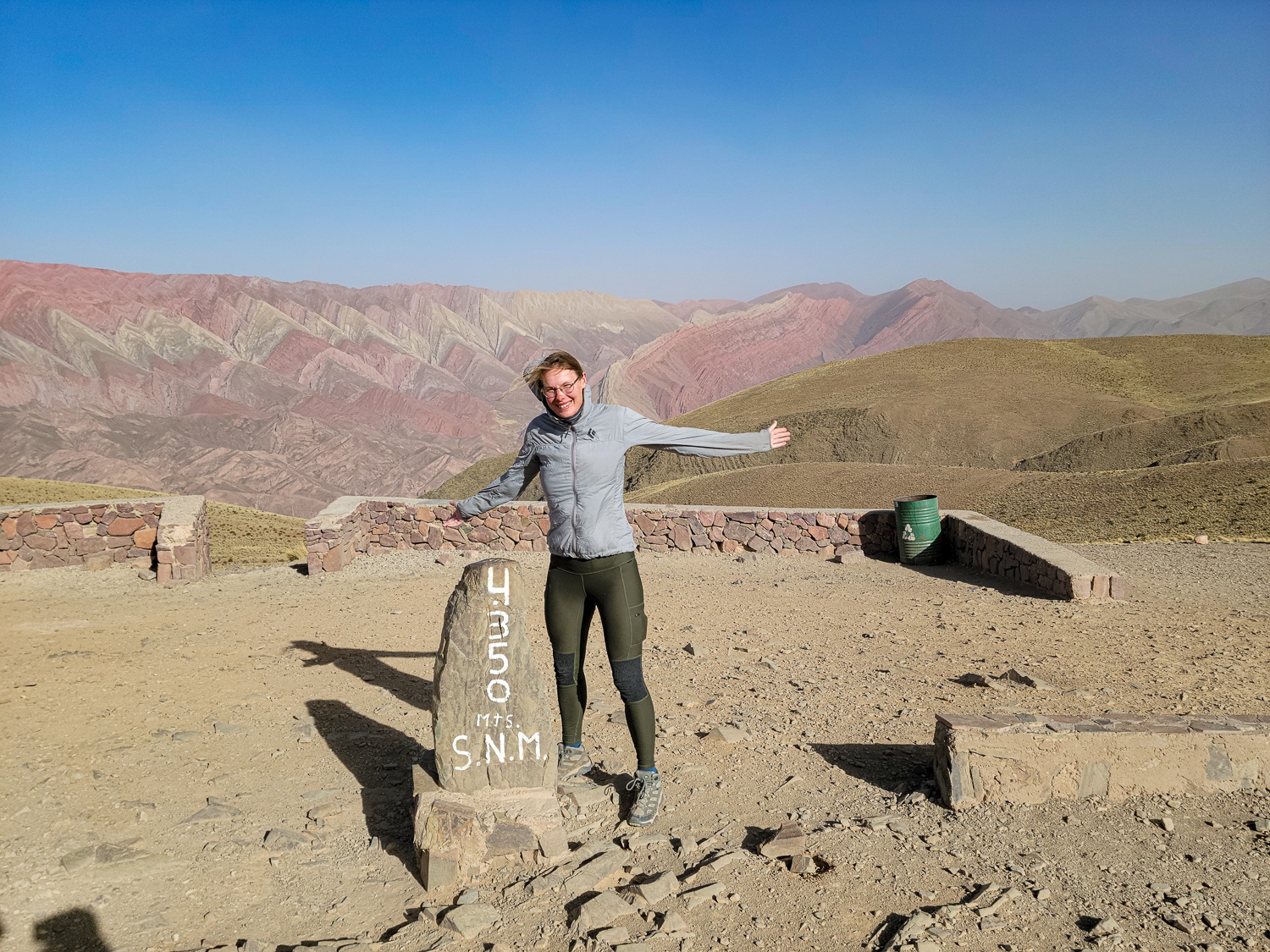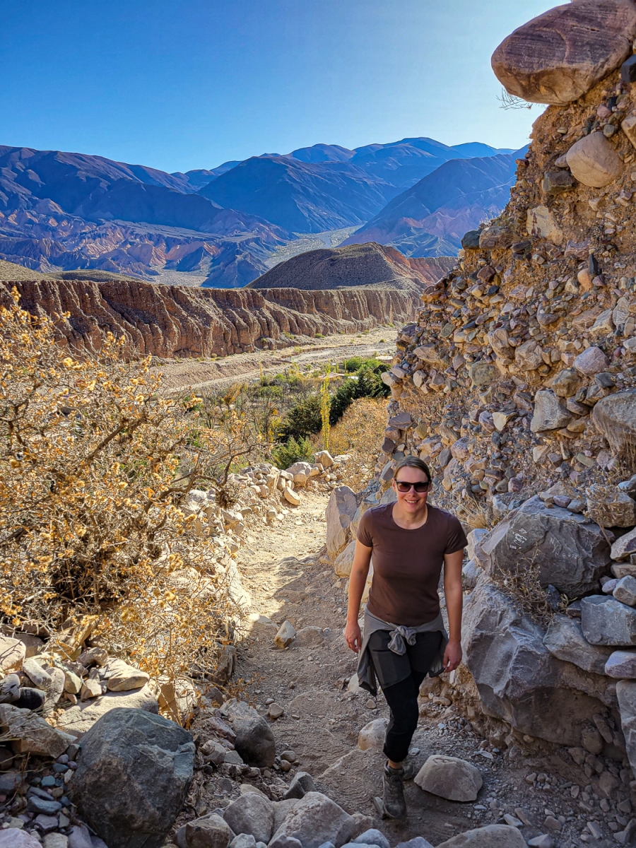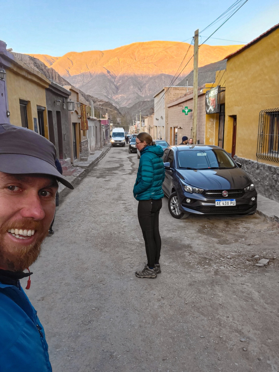 Vi var på vej op mod den argentiske højdeslette og for at stille og roligt at vænne os til højderne, valgte vi at blive et par dage hvert sted så vi i små skridt gik fra 1000moh til 3000moh. I byen Humahuaca tog vi en bil op og så det flotte bjerg med 14 farver som ligger i 4500moh så den oplevelse var også med til at vænne os til højderne.