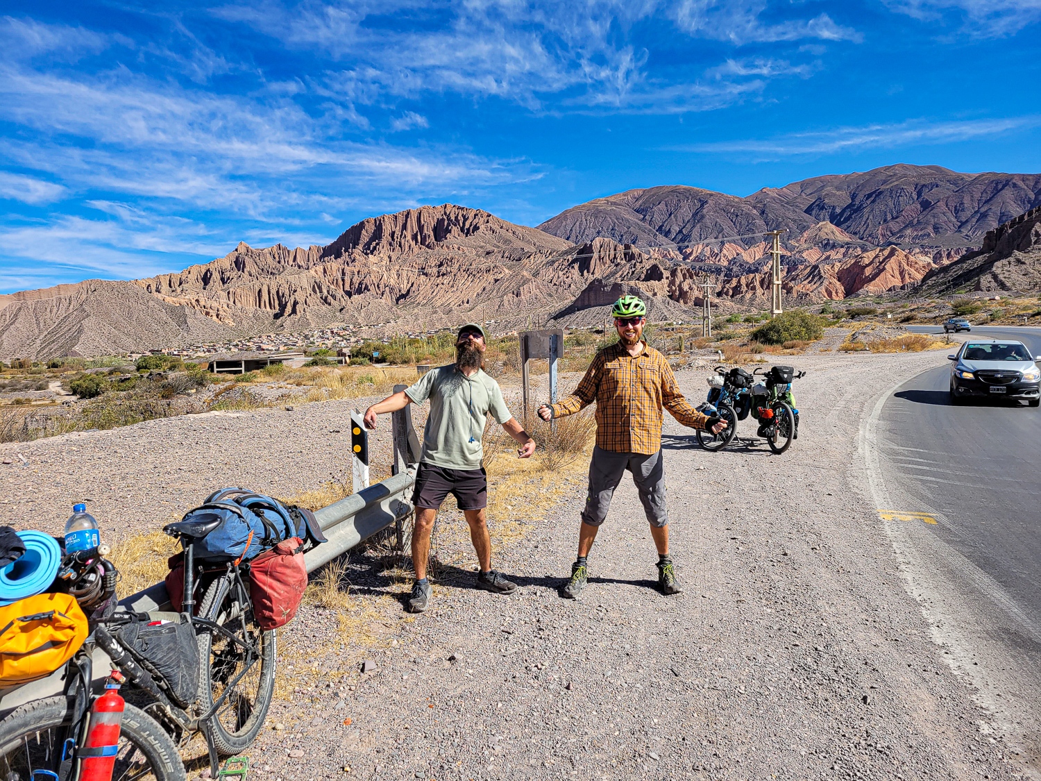 Vi lavede masser af mad så da de kom kunne vi hygge og spise. Næste dag pakkede vi cyklerne og cyklede mod første stop, byen Purmamaca og det 7 farvede bjerg. Vi havde en dejlig dag med høj sol, fandt en lille frokostrestaurant i byen Volcan. Her grinte de af os høje danskere og lavede en joke med Katja. “Hvordan kan du stå, når det blæser så høj som du er med de små fødder” og så grinte alle endnu mere.