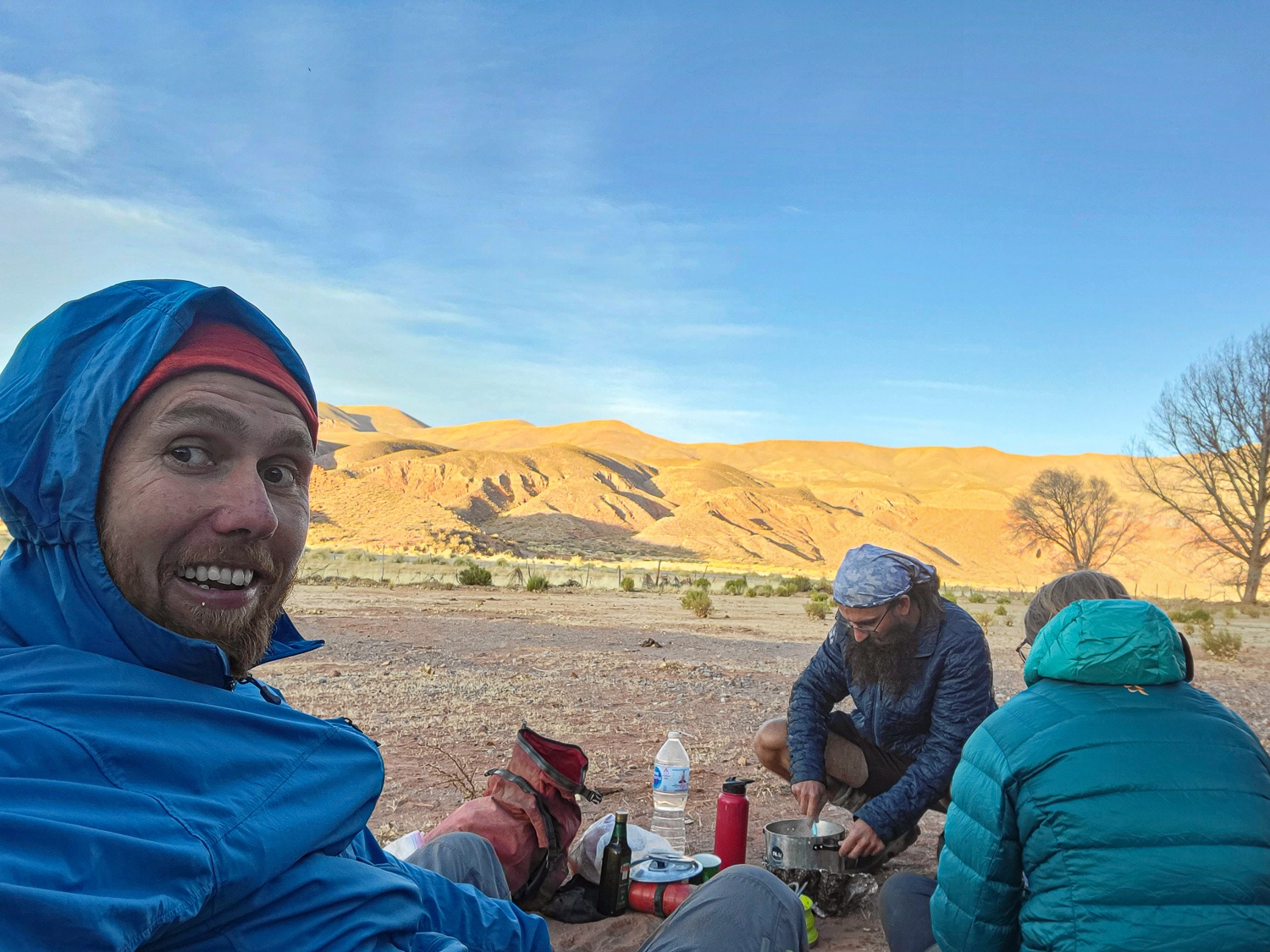 Om morgenen var alt iskoldt -15 grader og det at komme op var hårdt, men solen kom hurtigt på teltet og varmede op, det hjalp meget. Afsted videre vi havde første store stigning op til de 4800moh og ville gerne lidt ned inden vi skulle finde en plads til teltet. Vi kom godt over de 4800moh. Det var hårdt og tungt men ikke så slemt. Så kom vinden dog og gjorde resten af dagen et værre slid, vi kunne ikke finde læ og uden andre muligheder slog vi teltet op på et udsigts platform med en mur der gav lidt læ. Her mødte vi en gruppe på tur i området og guiden Filipe bød os på en varm kop te og et æble. Vi sov nogenlunde her i 4600moh koldt igen men det gik med en flaske med varmt vand i soveposen.