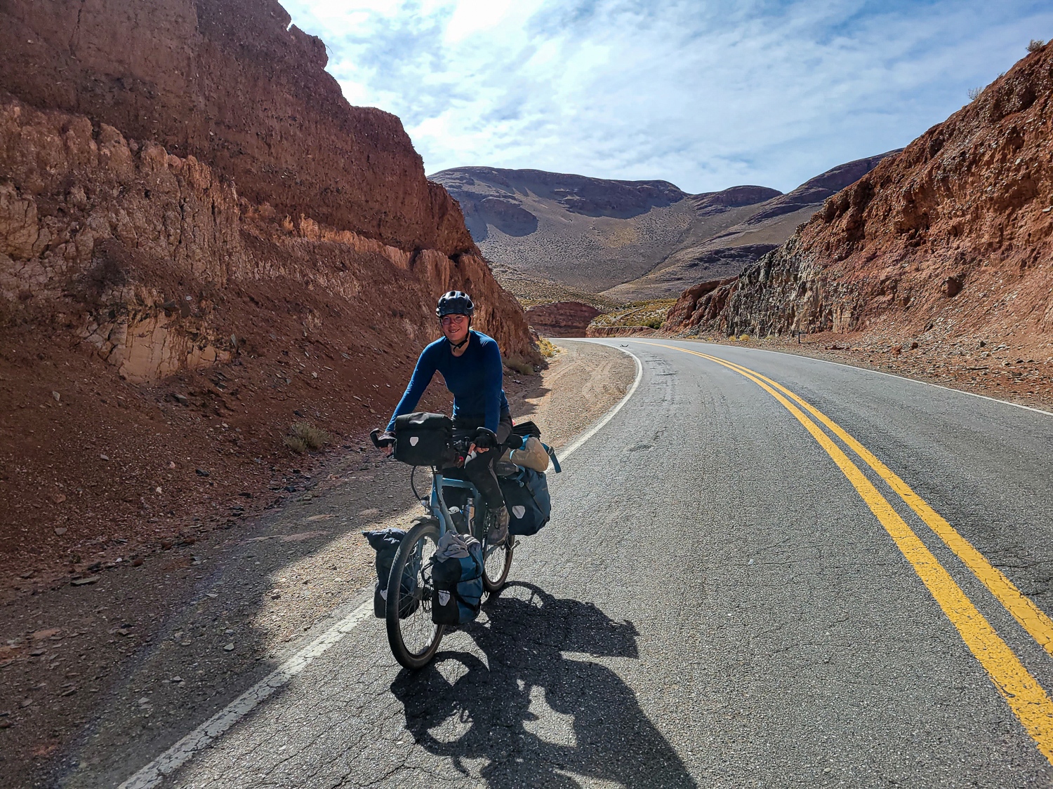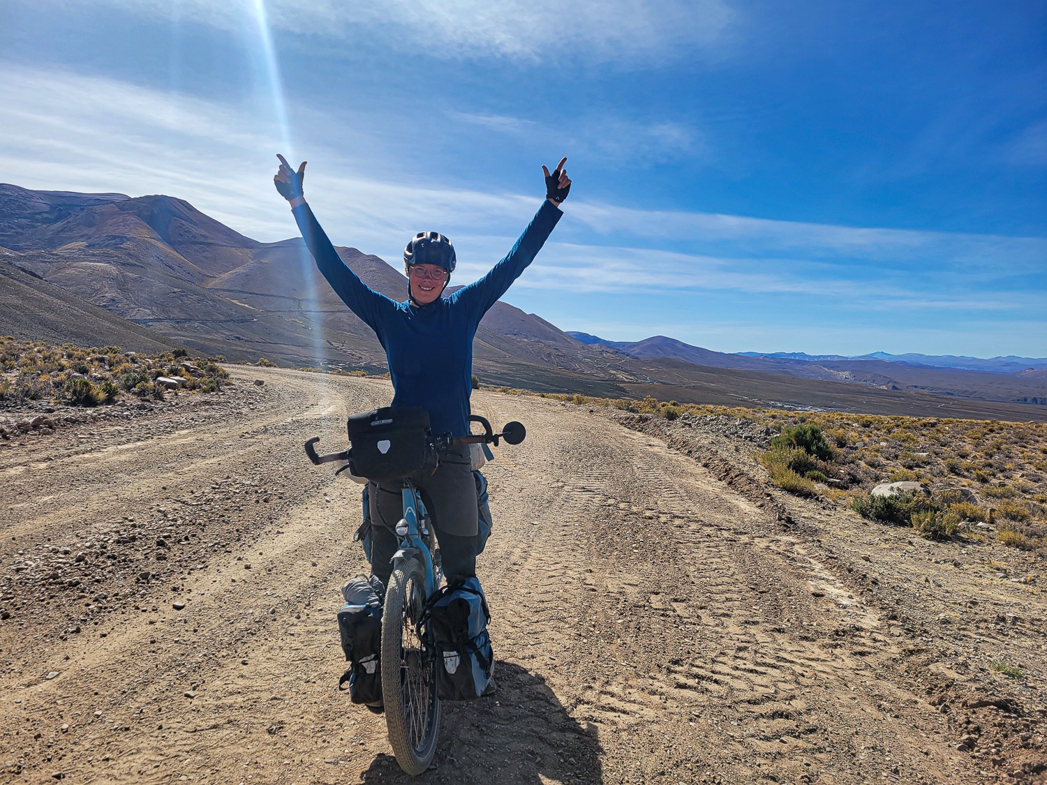 Fra humahuaca satte vi pilen mod vest og indover de flotte Andesbjerge, det betød at vi skulle op i 4200moh og meget øde landskab, så cyklerne blev godt pakket med mad og vand. Vi var heldige at finde frokost i en lille mineby oppe i 4000moh, hvor vi fik en bøf og ris til små penge.