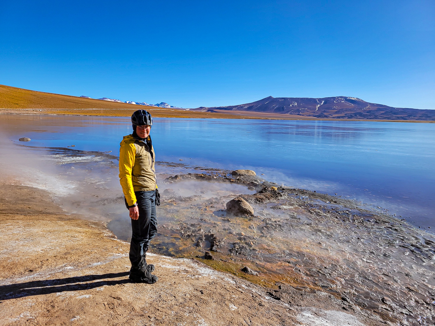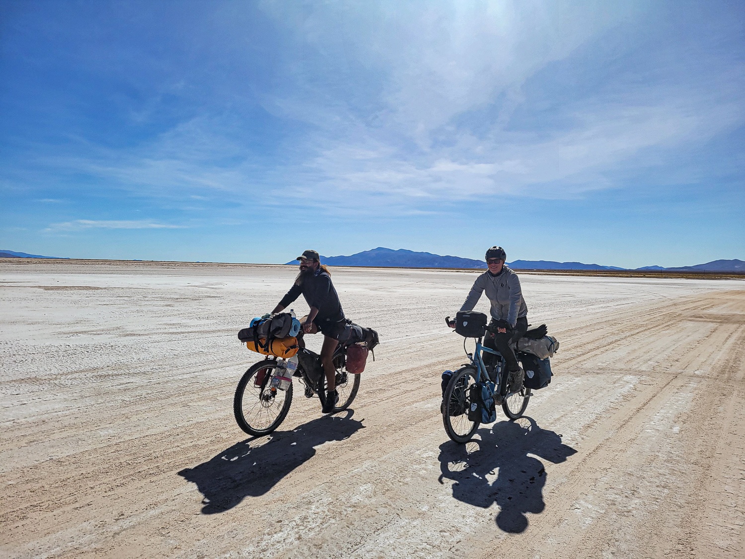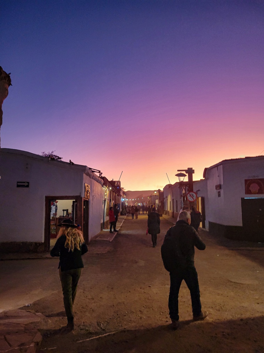 Pludselig stod vi og kiggede ud over Atacama ørkenen nede i 2600moh og vi i 4800moh det var vildt og vi var så glade for at skulle ned ad igen. Vi cyklede forbi grænsen til Bolivia som vi havde snakket om at krydse, men vel vidende at den tur ville være mere udfordrende, så vi aftalte at det måtte vi først snakke om efter en nats søvn og god mad i San Pedro de Atacama. Katja havde flere gange gennem de sidste dages stærke modvind tænkt at hun aldrig skulle op på det højplateu igen, men da vi dagen efter vågnede veludhvilede i San Pedro de Atacama, aftalte vi allerede før vi stod ud af sengen at vi selvfølgelig skulle krydse grænsen ind til det øde Bolivia.
