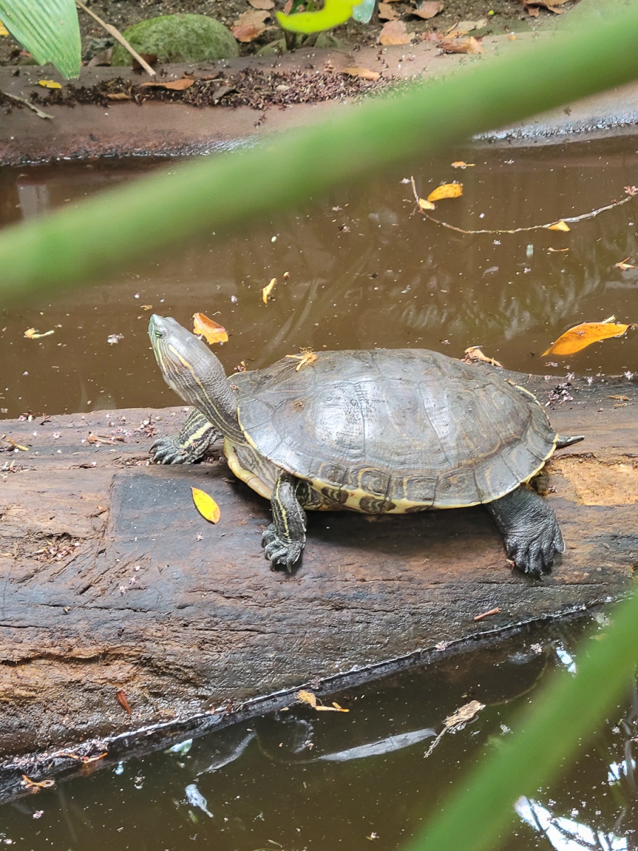 Junglen er udenfor døren til vores værelse. Det samme er dyrene, herunder gnaveren, Nutria, der ligner en forvokset rotte med sine op til 17 kilo. Den er glad for de madrester beboerne i det lille hotel-kollektiv, smider i junglen. Vi finder de finurlige brune dyr med store rumper sjove og nyder at se dem vimse rundt efter mad.