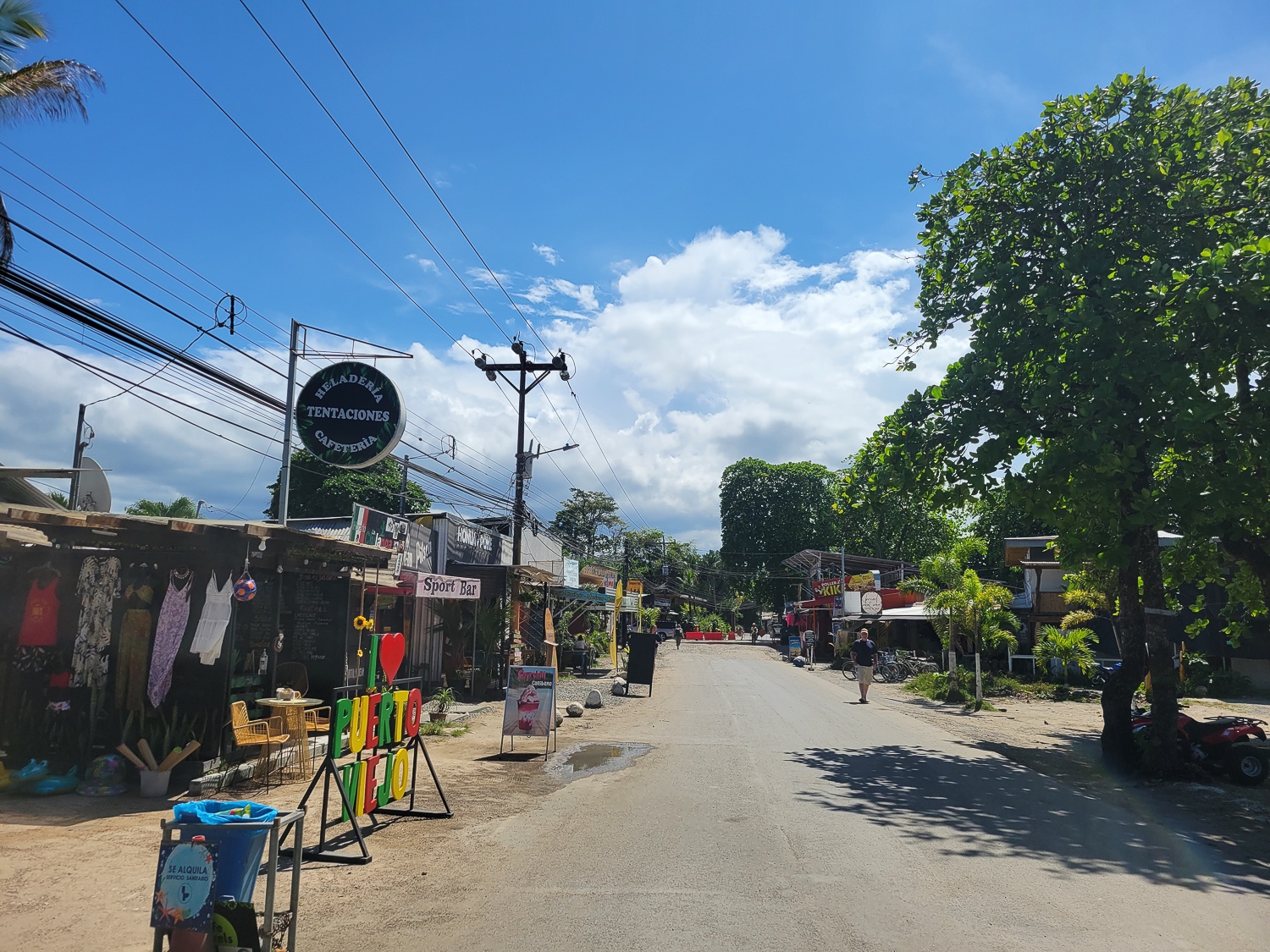 Tukanoplevelsen kommer på et godt tidspunkt. Vi er trætte i krop og hoved efter 10 dage i træk på cyklerne og endnu en dag igen badet i sved i de næsten 40 graders varme. Varmen er hverdagskost i Centralamerika, og en følgesvend vi lærer at leve med. Dyreoplevelsen giver point på energikontoen og vi suser de sidste 10 kilometer hen ad den caribiske kyst mod byen Puerto Viejo. Puerto Viejo er en festlig turistby. Vi vælger at bo i et roligere område uden for byen. Her mødes jungle og strand i en cocktail, der fungerer lige så godt som jordbær med fløde på en dansk sommeraften.