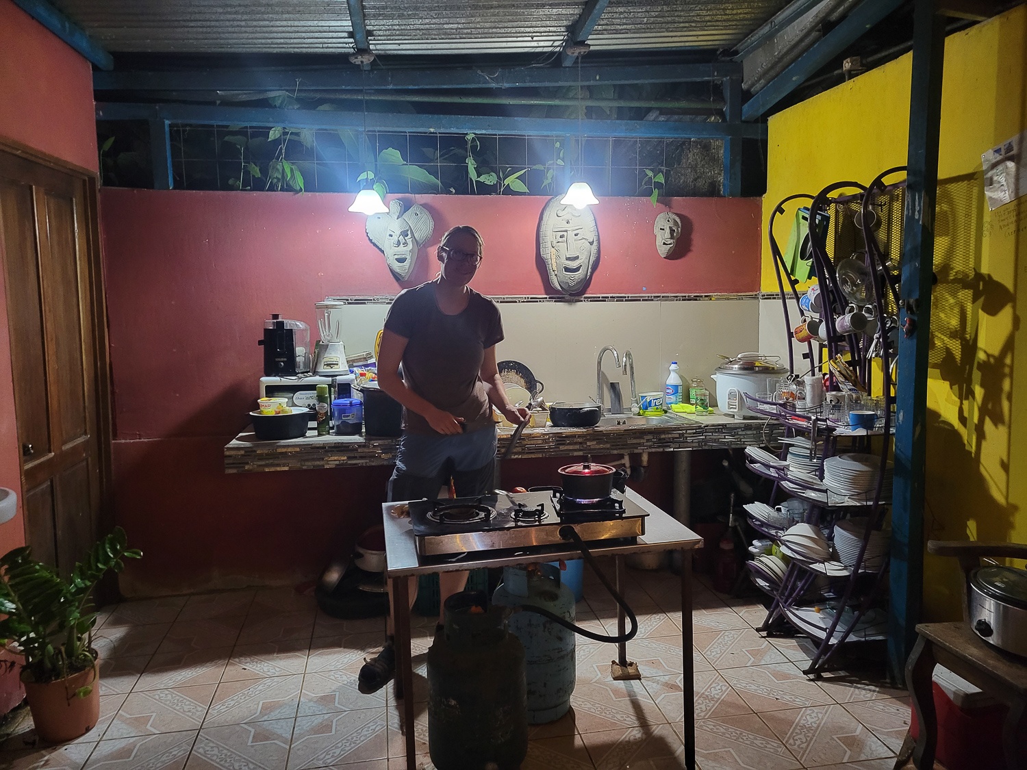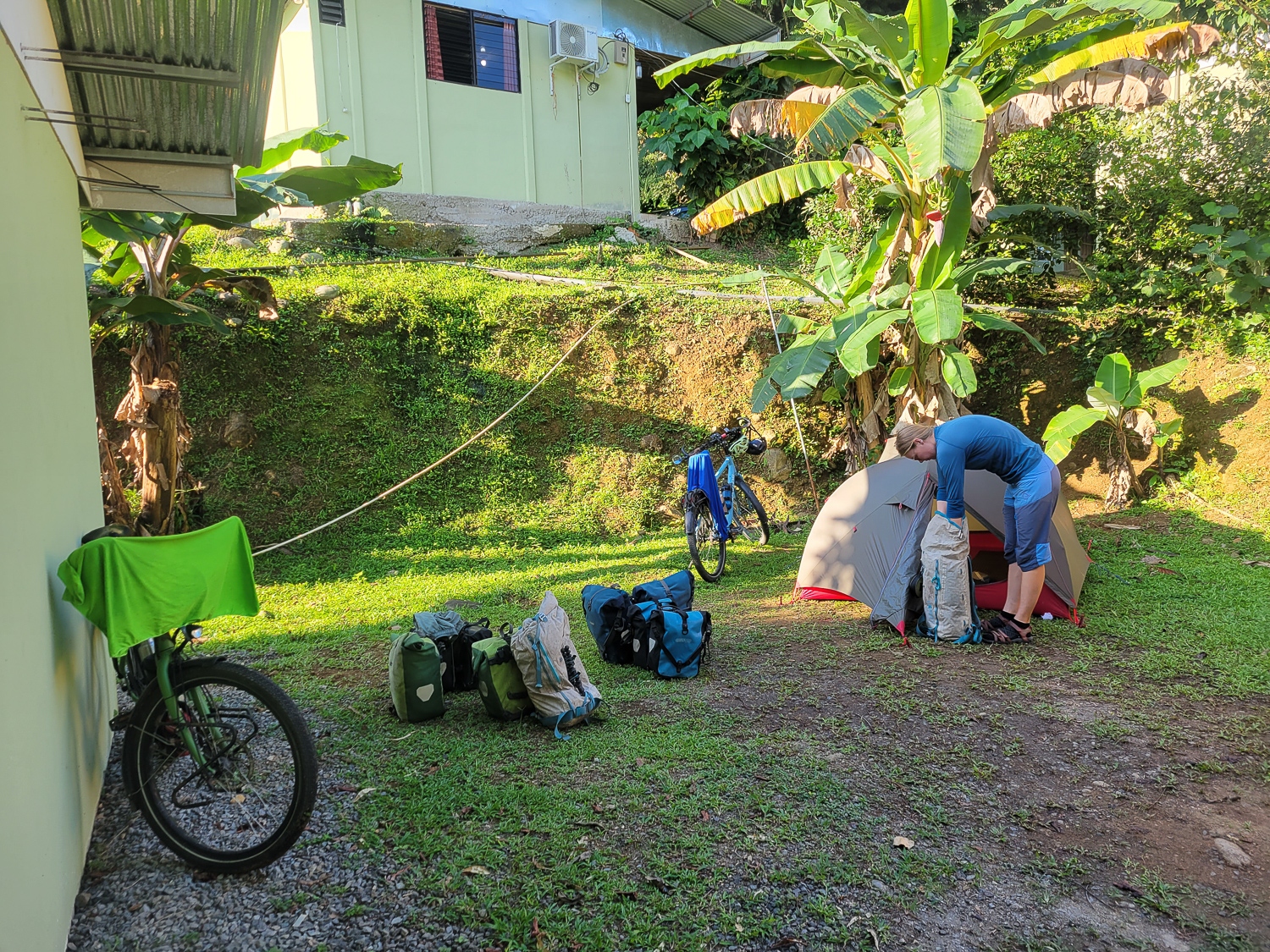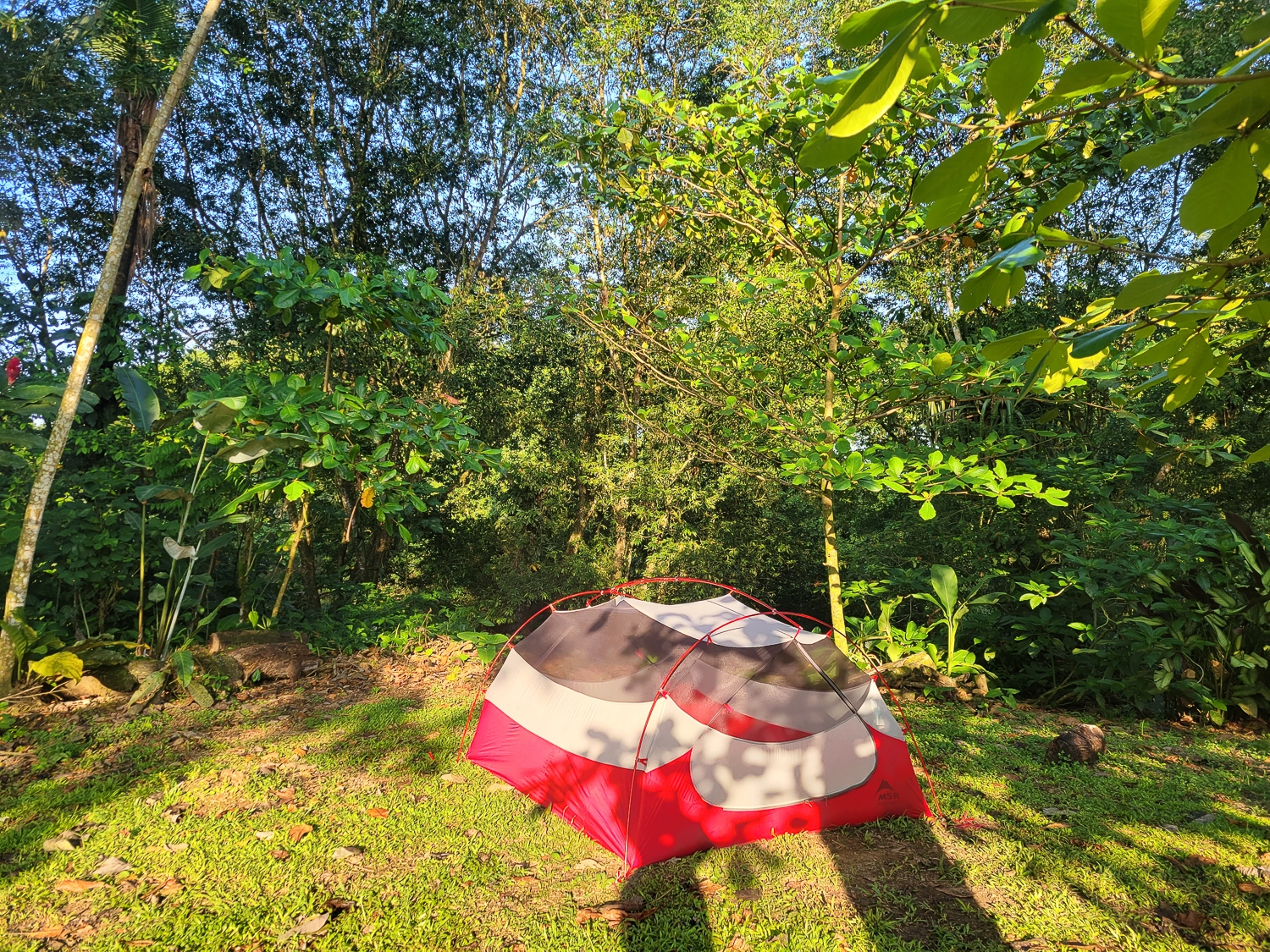 Budgettet rækker ikke til mange overnatninger på hotel, men vi bliver forkælet med skønne naturrige campingpladser hele vejen gennem Costa Rica, og får mod forventning brugt vores telt på trods af varmen. Det er nærmere reglen end undtagelsen, at vi sover med et dovendyr i træerne ovenfor, og hilser på en flok aber om eftermiddagen og morgenen. En aften vi laver aftensmad på vores benzinbrænder, ser vi en kuglemyre, som efter sigende lever op til sit navn; det skulle gøre lige så ondt at blive bidt af sådan en, som det gør at blive skudt.